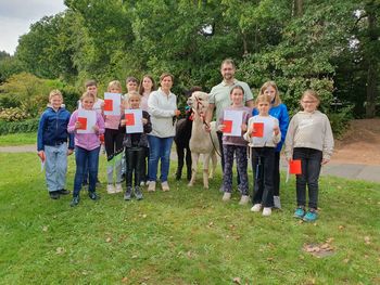 Ursprünglich war eine kleine Wanderung mit den Alpakas geplant, doch wegen des unbeständigen Wetters haben wir kurzerhand umgeplant. Stattdessen konnten wir die Tiere in aller Ruhe im Klostergarten kennenlernen. Dabei erfuhren wir viel über ihr Wesen, den richtigen Umgang und ihre Bedürfnisse - und am Ende hielten wir stolz unseren „Alpaka-Führerschein“ in den Händen!
