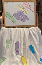 Die Fußspuren symbolisierten den gemeinsamen Weg im Glauben und die Spuren, die wir im Leben und in der Gemeinschaft hinterlassen. Weitere zentrale Begriffe waren: Nächstenliebe, Mut, Hilfe und Verantwortung.