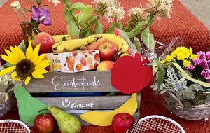 Das Team der Überraschungskirche Föhren hatte die Erntedankfeier vorbereitet. Alle Kinder waren eingeladen, ein Stück Obst zum Gottesdienst mitzubringen.